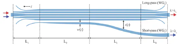 In our latest work published in Journal of Lightwave Technology (JLT), we introduce a new way to design and build ultra-broadband silicon photonic filters using adiabatic optimization of coupled waveguides.