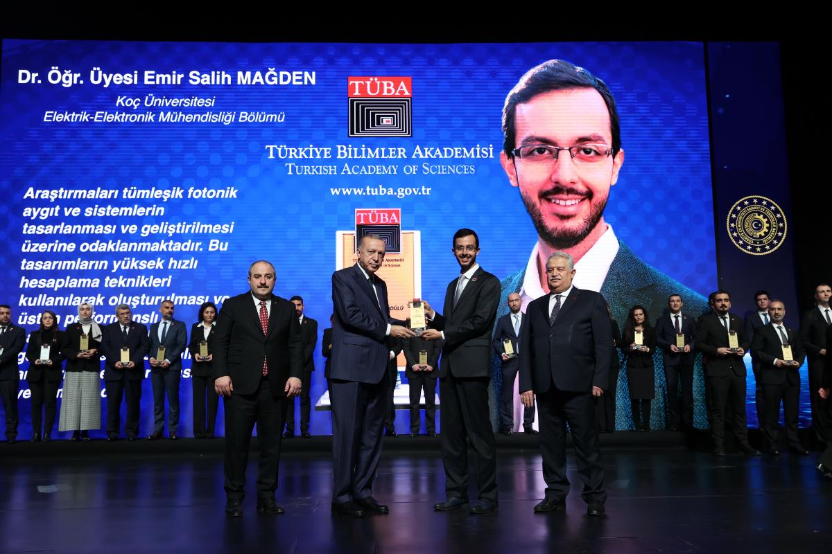 Prof. Emir Salih Magden has been awarded the 2021 GEBİP (Outstanding Young Scientist Award) by the Turkish Academy of Sciences (TÜBA). The award ceremony was held at the Presidential Complex in Ankara on December 28, 2021. Pictured is President Recep Tayyip Erdogan presenting the award to Prof. Magden.