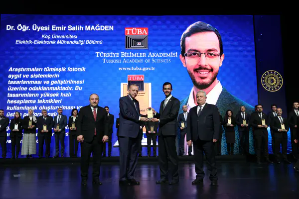Prof. Emir Salih Magden has been awarded the 2021 GEBİP (Outstanding Young Scientist Award) by the Turkish Academy of Sciences (TÜBA). The award ceremony was held at the Presidential Complex in Ankara on December 28, 2021. Pictured is President Recep Tayyip Erdogan presenting the award to Prof. Magden.